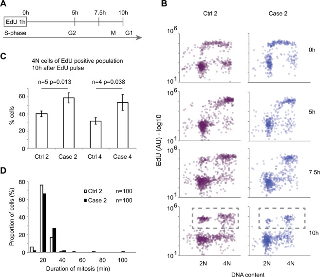 RMRP was the first non-coding nuclear RNA gene implicated in a disease. Its mutations cause cartilage-hair hypoplasia (CHH), an autosomal recessive skeletal dysplasia with growth failure, immunodeficiency, and a high risk for malignancies. This study aimed to gain further insight into the role of RNA Component of Mitochondrial RNA Processing Endoribonuclease (RMRP) in cellular physiology and disease pathogenesis. We combined transcriptome analysis with single-cell analysis using fibroblasts from CHH patients and healthy controls. To directly assess cell cycle progression, we followed CHH fibroblasts by pulse-labeling and time-lapse microscopy. Transcriptome analysis identified 35 significantly upregulated and 130 downregulated genes in CHH fibroblasts. The downregulated genes were significantly connected to the cell cycle. Multiple other pathways, involving regulation of apoptosis, bone and cartilage formation, and lymphocyte function, were also affected, as well as PI3K-Akt signaling. Cell-cycle studies indicated that the CHH cells were delayed specifically in the passage from G2 phase to mitosis. Our findings expand the mechanistic understanding of CHH, indicate possible pathways for therapeutic intervention and add to the limited understanding of the functions of RMRP.