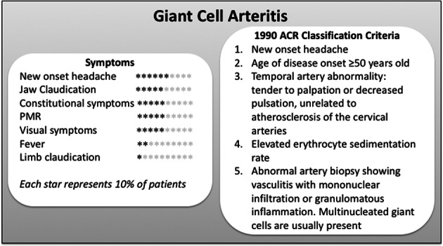 - Buttgereit F, Dejaco C, Matteson E, Dasgupta B. Polymyalgia rheumatica and giant cell arteritis: a systematic review. JAMA. 2016;315:2442–58. - PubMed