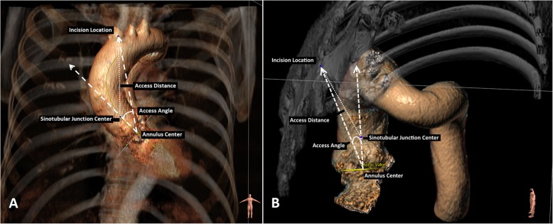 Methods: One hundred patients who underwent a mini-sternotomy and had a preoperative CT scan were included. With a CT-based mini-AVR planning tool, we measured access distance, access angle, annulus dimensions, and calcium volume. The associations of these measurements with cardiopulmonary bypass (CPB) time and aortic cross-clamp (AoX) time were assessed using univariable and multivariable regression models. In the multivariable models, these measurements were adjusted for age and suture technique.