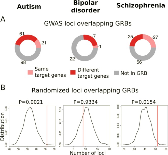 Recent genome-wide association studies have identified numerous loci associated with neuropsychiatric disorders. The majority of these are in non-coding regions, and are commonly assigned to the nearest gene along the genome. However, this approach neglects the three-dimensional organisation of the genome, and the fact that the genome contains arrays of extremely conserved non-coding elements termed genomic regulatory blocks (GRBs), which can be utilized to detect genes under long-range developmental regulation. Here we review a GRB-based approach to assign loci in non-coding regions to potential target genes, and apply it to reanalyse the results of one of the largest schizophrenia GWAS (SWG PGC, 2014). We further apply this approach to GWAS data from two related neuropsychiatric disorders-autism spectrum disorder and bipolar disorder-to show that it is applicable to developmental disorders in general. We find that disease-associated SNPs are overrepresented in GRBs and that the GRB model is a powerful tool for linking these SNPs to their correct target genes under long-range regulation. Our analysis identifies novel genes not previously implicated in schizophrenia and corroborates a number of predicted targets from the original study. The results are available as an online resource in which the genomic context and the strength of enhancer-promoter associations can be browsed for each schizophrenia-associated SNP.