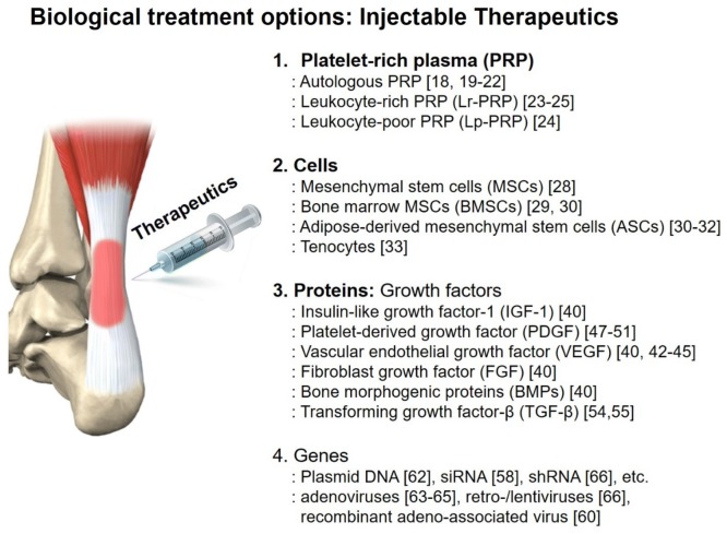 Background: Most tendon injuries are occurring from a gradual wearing and tearing of the tendon tissues from overuse. Such injuries are usually seen in sports, exercising, or daily activities that involve a high mechanical load and weight bearing. However, owing to the lack of both cellularity and blood vessels in tendons, the process of tendon repair is slow and inefficient. Although various conservative (non-surgical) and surgical management options are conducted by the clinicians, a gold standard of these approaches does not exist. In this regard, the treatment of tendon injuries is challenging.