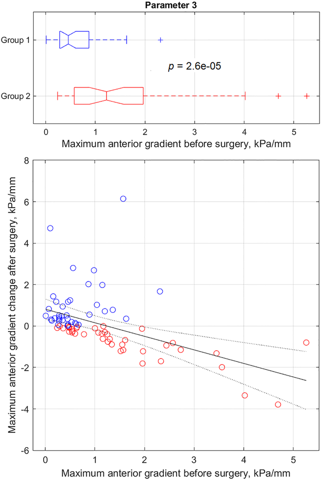 Methods: This multisite clinical study was designed to explore changes in tissue elasticity, pelvic support, and certain functions (contractive strength, muscle relaxation speed, muscle motility) after pelvic organ prolapse (POP) surgery. A biomechanical mapping of the pelvic floor was performed before and 4 to 6 months after the surgery. The biomechanical data for 52 parameters were acquired by vaginal tactile imaging for manually applied deflection pressures to vaginal walls and pelvic muscle contractions. The two-sample t-test (P < 0.05) was used to test the null hypothesis that presurgery data in group 1 (positive parameter change after surgery) and presurgery data in group 2 (negative parameter change after surgery) belonged to the same distribution.