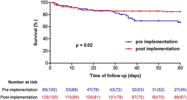 Methods: Patients with NSTIs admitted between 2006 and 2017 were compared according to admission before or after bundle implementation (2012-2013). This bundle consisted mainly in (1) the creation of a multidisciplinary task force; (2) management guidelines on empirical antibiotics, intensive care unit admission criteria, a triage algorithm to accelerate operating room access; and (3) an active communication policy. Patient recruitment and management were compared between pre- and post-implementation periods. Main outcome was day 60-censored hospital survival.