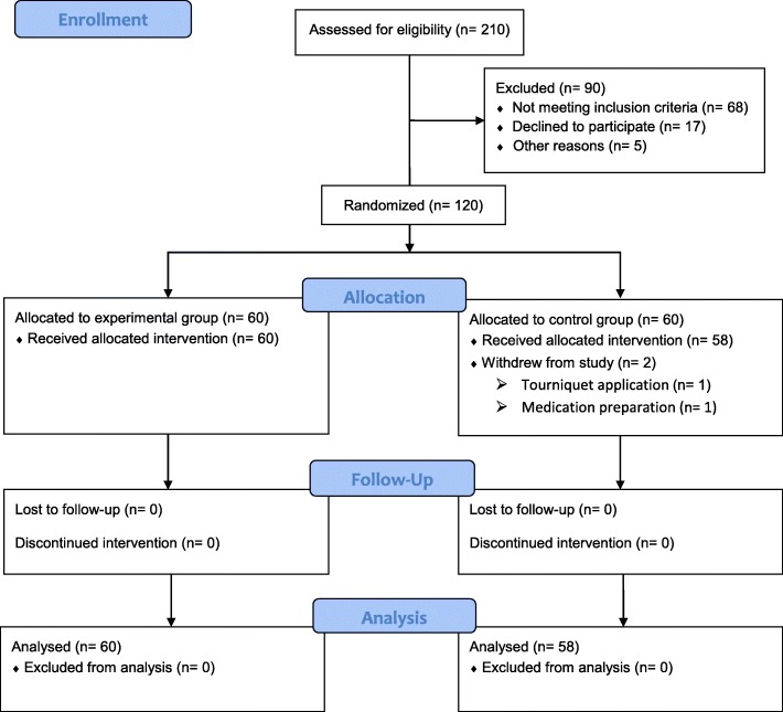 Methods: In this double-blinded trial, 118 patients undergoing primary TKA were randomized into two groups: the patients in group A received intravenous TXA at 20-mg/kg 10 min before the surgery and 3 h postoperatively, and then oral 1 g TXA from postoperative day (POD) 1 to POD 14, and the patients in group B received intravenous TXA at 20-mg/kg 10 min before surgery and 3 h postoperatively, and then oral 1 g placebo from postoperative day (POD) 1 to POD 14. The primary outcome was total blood loss. Secondary outcomes included ecchymosis area and morbidity, postoperative transfusion, postoperative laboratory values, postoperative knee function and length of hospital stay. Complications, and patient satisfaction were also recorded.