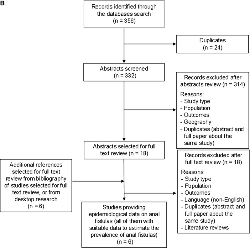 Methods: Two independent literature reviews were performed using different search strategies to maximize the identification of potentially relevant studies. Data from relevant articles were used to estimate the prevalence of perianal fistulas in Europe. The robustness of the estimate was evaluated using data from a large population-based database from the UK.