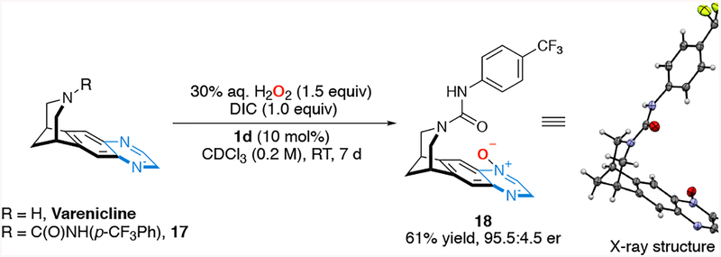 The catalytic, enantioselective N-oxidation of substituted pyridines is described. The approach is predicated on a biomolecule-inspired catalytic cycle wherein high levels of asymmetric induction are provided by aspartic-acid-containing peptides as the aspartyl side chain shuttles between free acid and peracid forms. Desymmetrizations of bis(pyridine) substrates bearing a remote pro-stereogenic center substituted with a group capable of hydrogen bonding to the catalyst are demonstrated. Our approach presents a new entry into chiral pyridine frameworks in a heterocycle-rich molecular environment. Representative functionalizations of the enantioenriched pyridine N-oxides further document the utility of this approach. Demonstration of the asymmetric N-oxidation in two venerable drug-like scaffolds, Loratadine and Varenicline, show the likely generality of the method for highly variable and distinct chiral environments, while also revealing that the approach is applicable to both pyridines and 1,4-pyrazines.