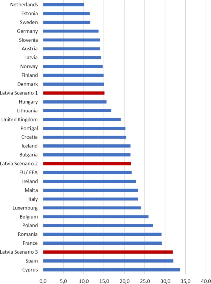 Several guidelines recommend the screen-and-treat strategy, i.e. active search for the presence of Helicobacter pylori infection and its eradication to prevent the possibility of gastric cancer. It is thought that a relatively short duration antibiotic regimen given once in a lifetime would not significantly increase overall antibiotic consumption. However, this would mean offering antibiotic treatment to the majority of the population in countries with the biggest burden of gastric cancer who would, therefore, have the greatest benefit from such a strategy. So far, no country has implemented an eradication strategy. With an example based on the current situation in Latvia, we have estimated the increase in antibiotic consumption if the screen-and-treat strategy was applied. Depending on the scenario that might be chosen, clarithromycin consumption would increase up to sixfold, and amoxicillin consumption would double if the recommendations of the current guideline in the local circumstances was applied. It appears that an increase in commonly used antibiotic consumption cannot be justified from the viewpoint of antibiotic stewardship policies. Solutions to this problem could be the use of antibiotics that are not required for treating life-threatening diseases or more narrow selection of the target group, e.g. young people before family planning to avoid transmission to offspring. Additional costs related to the increase in resistome should be considered for future cost-effectiveness modelling of the screen-and-treat strategy.