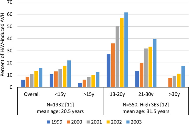 Hepatitis A, an acute inflammatory liver disease caused by hepatitis A virus (HAV) infection from close contact with infected people, is highly endemic in the Indian subcontinent. Due to poor sanitary conditions, most of the population is exposed to the virus in childhood. At this age, the disease is asymptomatic and provides life-long protection against the disease. Due to rapid socioeconomic development in some areas, however, pockets of the population are reaching adolescence/adulthood without prior exposure to the virus and are thus susceptible to infection. At these ages, infection carries a higher risk of symptomatic disease and complications including mortality. This review of epidemiology and burden of disease studies in the Indian subcontinent, published since 2005, shows increasing evidence of a shift from high to intermediate endemicity in high-income-typically urban-populations. The prevalence of anti-HAV antibodies (previously reported at > 90%) is lower now in adolescents and young adults (e.g., around 80% in Bangladesh and 55% in 5-15 years in India). As a result, HAV is responsible for more acute viral hepatitis predominantly in this age group (e.g., > 15 years: 3.4% in 1999 to 12.3% in 2003 or high socioeconomic status 13-20 years: 27% in 1999 to 62% in 2003), with a greater clinical and economic burden. Numerous outbreaks due to HAV have been reported [e.g., Sri Lanka (2009-2010): > 13,000 affected; Kashmir (2015-2017): 12 outbreaks; Kerala (2012-2016): 84 outbreaks] from water or food contamination. Due to current shifts in endemicity, a growing proportion of the population is no longer exposed in childhood. As the disease remains highly endemic, it also provides a source for more severe disease in susceptible people at an older age and for outbreaks. Well-tolerated and effective vaccines are available and help prevent disease burden and provide long-term protection. These should now be used more widely to protect more patients from the growing disease burden of hepatitis A. FUNDING: GlaxoSmithKline Biologicals SA. Plain language summary available for this article-please see Fig. 1 and the following link: https://doi.org/10.6084/m9.figshare.9963044.Fig. 1Plain Language Summary. Highlights the context of the article, the endemicity shift and the burden of hepatitis A in adolescents and adults and steps to be taken to address the impact of this disease.