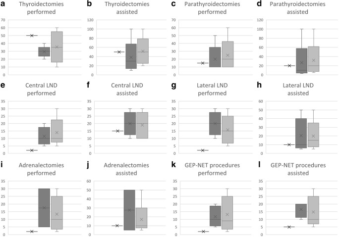 Results: For most of the operations, the overall number as defined by national surgical boards matched quite well the views of the national delegates even though differences exist between countries. In addition, the current numbers required for the EBSQ exam are well within this range for thyroid and parathyroid procedures but below for neck dissections as well as operations on the adrenals and GEP-NETs.