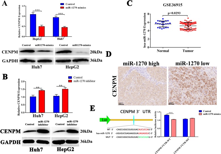 Results: CENPM was positively up-regulated in HCC and connected with a poor prognosis. Silencing CENPM repressed cell proliferation in vivo and in vitro, and knock-down CENPM inhibited cell migration and invasion. Additionally, depletion of CENPM can promote cell apoptosis and arrested cell cycle. Furthermore, single-gene gene set enrichment analysis (GSEA) analysis indicated that CENPM was linked to the P53 signaling pathway and cell cycle pathway, and our research supported this prediction. Finally, we also found that miR-1270 was a negative regulator and participated in post-transcriptional regulation of CENPM, and hepatitis B virus X protein (HBx) can promote hepatocellular carcinoma by suppressing miR1270.
