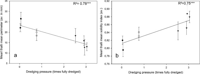Maerl beds form complex biogenic benthic habitats, characterized by high productivity as well as diverse biological communities. Disturbances associated with extraction and/or fishing activities using mobile bottom-contacting gears such as clam-dredges induce the most severe and long-term effects on these fragile habitats. We here investigated the effects of dredge-fishing on maerl in the bay of Brest (France). We quantified maerl beds structure and vitality across a fine scale quantified dredging intensity gradient through the acquisition of in-situ images of beds cross-section using Sediment Profile Imaging system (SPI). Declines in the proxies of maerl vitality and habitat complexity were measured across the gradient, and were associated with significant changes in the vertical distribution of live and dead maerl as well as of interstitial space. Fishing with dredges caused maerl mortality, substratum compaction, and decreasing habitat complexity. SPI imaging techniques also allowed for an assessment of changes in spatial heterogeneity that dredging created on several aspects of the structure and vitality of maerl beds. It suggests that direct and indirect disturbances induced by dredging are not acting at the same spatial scale, and can thereby differentially affect the ecosystem functions linked to vitality and habitat complexity.