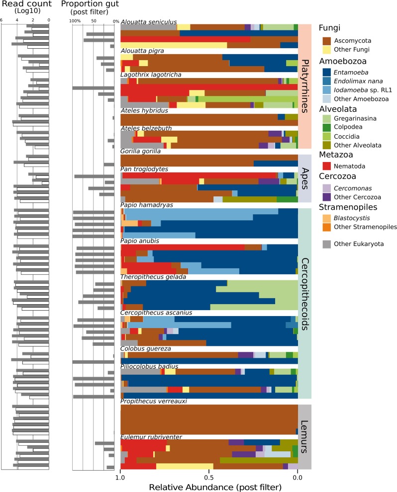 Biodiversity of protists and nematodes in the wild nonhuman primate gut