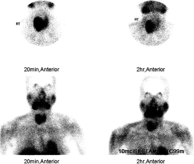 Case presentation: A 52-year-old Indian woman presented with a palpable right-sided neck mass and generalized fatigue. Investigations revealed hypercalcemia with elevated parathyroid hormone and an asymptomatic kidney stone. Ultrasound showed a complex nodule with solid and cystic components, and Sestamibi nuclear scan confirmed a giant parathyroid adenoma. Focused surgical neck exploration was done and a giant parathyroid adenoma weighing 7.7 gm was excised.