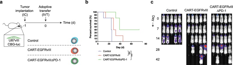 CRISPR-Cas9 disruption of PD-1 enhances activity of universal EGFRvIII CAR T cells in a preclinical model of human glioblastoma
