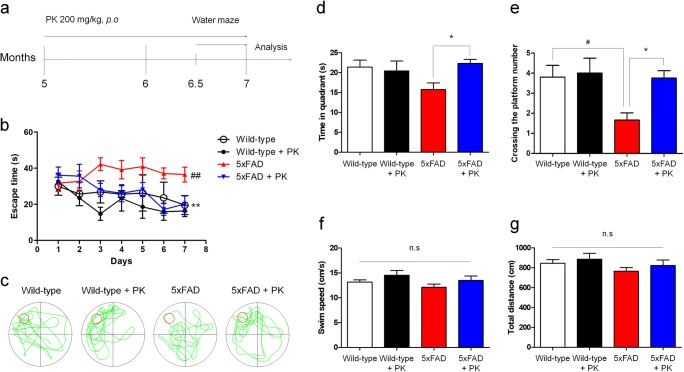 One of the most significant pathologies of Alzheimer's disease (AD), an irreversible and progressive neurodegenerative disease that causes cognitive impairment, is the neuroinflammation facilitating the accumulation of amyloid-β (Aβ) peptide. Hence, the inhibition of abnormal neuroinflammatory response is considered a promising therapeutic approach for AD. Picrorhiza kurroa Bentham, Scrophulariae (PK) is a medicinal herb that has been traditionally used for the treatment of various diseases, including inflammation. This study aims to report the significance of PK treatment in markedly improving spatial learning memory and dramatically decreasing Aβ levels in Tg6799 mice, also known 5xFAD mice, which have five familial AD (FAD) mutations. Remarkably, these effects correlated with reversal of disease-related microglial neuroinflammation, as evidenced by shifting microglia phenotypes from the inflammatory form to the anti-inflammatory form and inhibiting the nucleotide-binding oligomerization domain, leucine-rich repeat, and pyrin domain containing 3 inflammasome activity. Moreover, PK administration induced silent information regulator type1/peroxisome proliferator-activated receptor-γ signaling, resulting in a decrease of β-secretase 1 (BACE1) expression, which involved in Aβ production. Overall, this study suggests that PK exhibits a neuroprotective effect by inducing alternative activation of microglia and downregulating the BACE1 expression, thereby ameliorating the disease pathophysiology and reversing the cognitive decline related to Aβ deposition in AD mice.