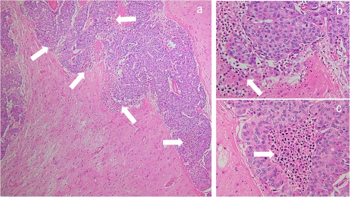 Results: There were 164 stage III and 279 stage IV patients, including 37 (22.6%) and 51 (18.3%) long-term survivors and 12 (7.3%) and 5 (1.8%) CR patients, respectively. The long-term survivors were divided into three groups: 3 ≤ OS < 5 years, 5 years ≤ OS with tumor, and 5 years ≤ OS without tumor (CR). The median OS of these groups were 1,405, 2,238, and 2,876 days in stage III and 1,368, 2,503, and 2,643 days in stage IV, respectively. The mean chemotherapy cycle numbers were 16, 20, and 10 in stage III and 24, 25, and 5 in stage IV, respectively. In the stage III CR group, all patients received chemoradiation, all oligometastases were controlled by radiation, and none had brain metastases. Compared with non-CR patients, the stage IV CR patients had smaller primary tumors and fewer metastases, which were independent prognostic factors for OS among long-term survivors. The 80% stage IV CR patients received radiation or surgery for controlling primary tumors, and the surgery rate for oligometastases was high. Pathological findings in the stage IV CR patients revealed that numerous inflammatory cells existed around and inside resected lung and brain tumors, indicating strong immune response.