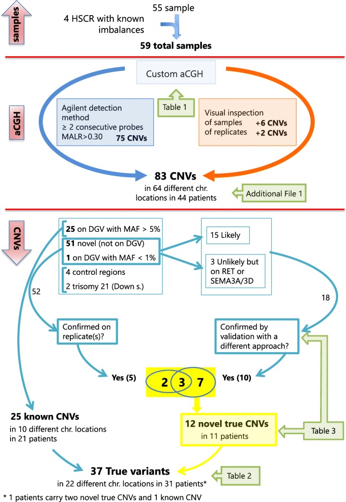 Keywords: Candidate genes and regions; Comparative genomic hybridization; Copy number variations; Custom array; Hirschsprung disease.