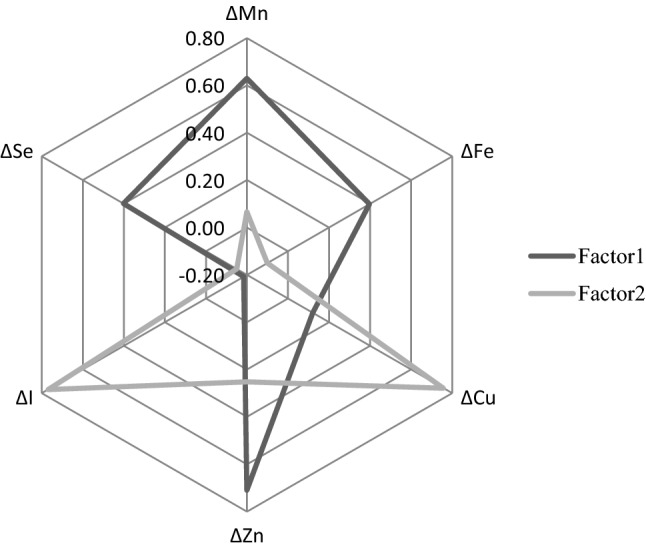 Results: Median age of our study sample was 58.32 years (4.42) at baseline and 40% were females. Median Mn, Zn, Se concentrations and Se to Cu ratio significantly decreased during aging while median Fe, Cu, I concentrations and Cu to Zn ratio significantly increased. A substantial percentage of the participants, at both time points, had Zn concentrations below the reference range. The first PCA-extracted factor reflected the correlated decline in both Mn and Zn over time while the second factor reflected the observed (on average) increase in both Cu and I over time. Overall, none of the investigated factors were strong determinants of TE longitudinal variability, except possibly dietary supplement use, and alcohol use for Fe.