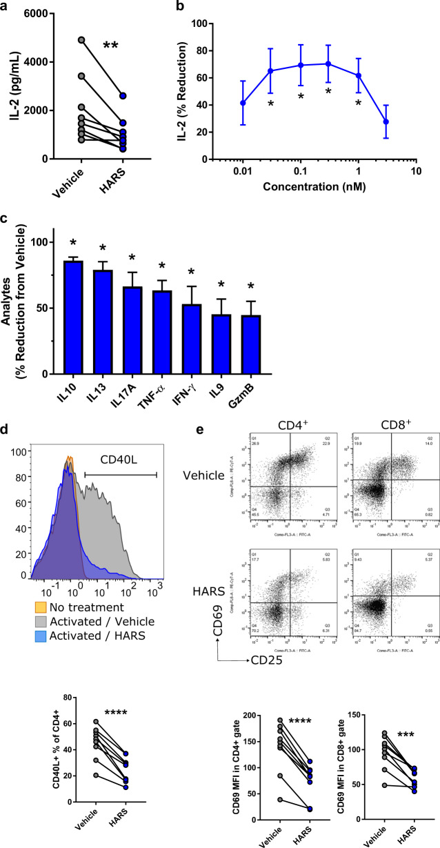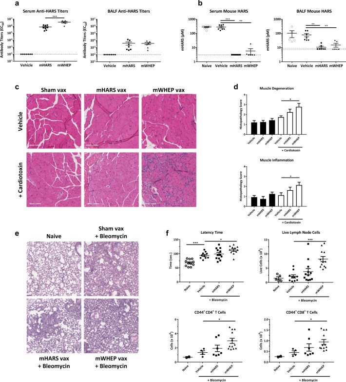 His-tRNA synthetase (HARS) is targeted by autoantibodies in chronic and acute inflammatory anti-Jo-1-positive antisynthetase syndrome. The extensive activation and migration of immune cells into lung and muscle are associated with interstitial lung disease, myositis, and morbidity. It is unknown whether the sequestration of HARS is an epiphenomenon or plays a causal role in the disease. Here, we show that HARS circulates in healthy individuals, but it is largely undetectable in the serum of anti-Jo-1-positive antisynthetase syndrome patients. In cultured primary human skeletal muscle myoblasts (HSkMC), HARS is released in increasing amounts during their differentiation into myotubes. We further show that HARS regulates immune cell engagement and inhibits CD4+ and CD8+ T-cell activation. In mouse and rodent models of acute inflammatory diseases, HARS administration downregulates immune activation. In contrast, neutralization of extracellular HARS by high-titer antibody responses during tissue injury increases susceptibility to immune attack, similar to what is seen in humans with anti-Jo-1-positive disease. Collectively, these data suggest that extracellular HARS is homeostatic in normal subjects, and its sequestration contributes to the morbidity of the anti-Jo-1-positive antisynthetase syndrome.