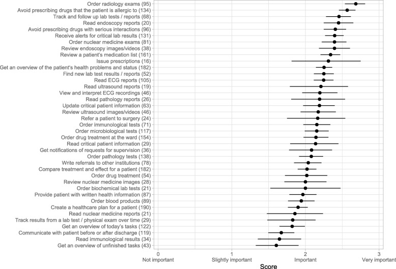 Methods: Physicians of three prominent Norwegian hospitals participated in the survey. They were asked, in an online questionnaire, how well the hospital's electronic health record system DIPS supported 49 clinical tasks as well as how satisfied they were with the system in general, including the technical performance. Two hundred and eight of 402 physicians (52%) submitted a completely answered questionnaire.