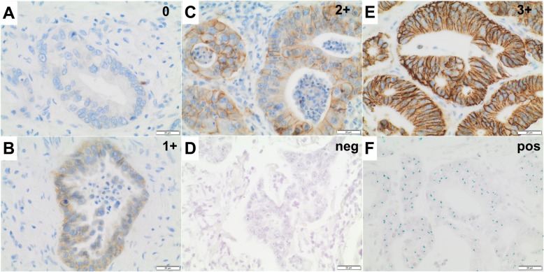 Methods: In this study, we determined the frequency of amplification of the HER2 gene in a comprehensive and well-characterized European cholangiocarcinoma cohort encompassing 436 patients including intrahepatic (n = 155), proximal (n = 155) and distal (n = 126) cholangiocarcinoma by strict application of a combined immunohistochemical and in situ hybridization algorithm following the current guidelines for HER2 assessment in gastric cancer.