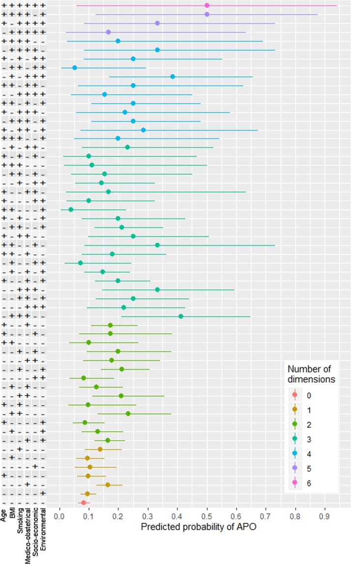 Multiple risk factors are associated with adverse pregnancy outcomes (APO), but how all these different factors combine and accumulate remains unknown. The objective of this observational retrospective study was to describe the accumulation of multiple vulnerability markers in pregnant women living in an urban area. Women living in Besançon (France) who delivered between 2005 and 2009 were included. Individual data were collected from the obstetrical records while environmental exposures were collected using environmental prediction models. The accumulation of 15 vulnerability markers, grouped into six dimensions (maternal age, smoking, body mass index (BMI), socio-economic, medico-obstetrical and environmental vulnerabilities) was described and analyzed in comparison with four APO. Among the 3686 included women, 20.8% were aged under 20 or over 34 and 21.9% had an extreme pre-pregnancy BMI. 18.8% declared smoking during pregnancy. Women exposed to socio-economic, medico-obstetrical or environmental vulnerability were 14.2%, 31.6% and 42.4% respectively. While 20.6% were not exposed to any marker, 18.8% accumulated three or more dimensions. The risk of APO increased significantly with the cumulative number of vulnerabilities. Define and validate a vulnerability score could be useful to identify vulnerable women, adapt their pregnancy monitoring and help policy makers to implement appropriate education or health promotion programs.