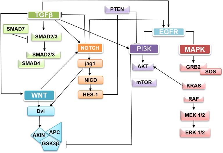 Keywords: Colorectal cancer; EGFR; MAPK; Notch; TGF-β.