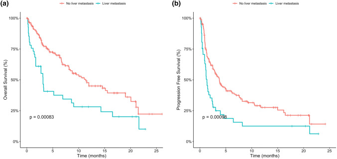 Results: Among the included patients, those with liver metastasis had shorter overall survival (OS) [hazard ratio (HR), 2.04; 95% CI 1.33-3.13] and progression-free survival (PFS) (HR, 1.89; 95% CI 1.29-1.71) compared to those without the same. Patients with liver metastasis had a response rate (RR) of 22.5%. Among patients with liver metastasis, inferior OS was associated with low albumin, poor Eastern Cooperative Oncology Group performance status, driver mutation, and number of liver metastasis (≥ 5). Moreover, patients with liver metastasis who had good Royal Marsden Hospital (0-1) and Gustave Roussy Immune (0-1) scores showed significantly longer OS and PFS.