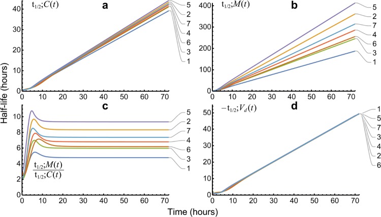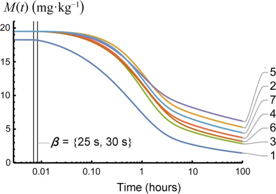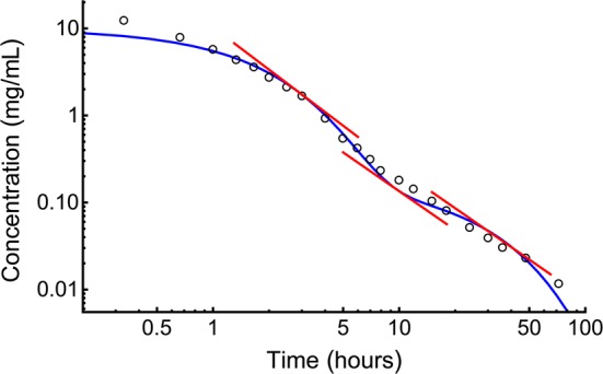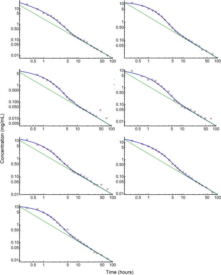 A model was developed for long term metformin tissue retention based upon temporally inclusive models of serum/plasma concentration ([Formula: see text]) having power function tails called the gamma-Pareto type I convolution (GPC) model and was contrasted with biexponential (E2) and noncompartmental (NC) metformin models. GPC models of [Formula: see text] have a peripheral venous first arrival of drug-times parameter, early [Formula: see text] peaks and very slow washouts of [Formula: see text]. The GPC, E2 and NC models were applied to a total of 148 serum samples drawn from 20 min to 72 h following bolus intravenous metformin in seven healthy mongrel dogs. The GPC model was used to calculate area under the curve (AUC), clearance ([Formula: see text]), and functions of time, f(t), for drug mass remaining (M), apparent volume of distribution ([Formula: see text]), as well as [Formula: see text] for [Formula: see text], [Formula: see text] and [Formula: see text]. The GPC models of [Formula: see text] yielded metformin [Formula: see text]-values that were 84.8% of total renal plasma flow (RPF) as estimated from meta-analysis. The GPC [Formula: see text]-values were significantly less than the corresponding NC and E2 [Formula: see text]-values of 104.7% and 123.7% of RPF, respectively. The GPC plasma/serum only model predicted 78.9% drug [Formula: see text] average urinary recovery at 72 h; similar to prior human urine drug [Formula: see text] collection results. The GPC model [Formula: see text] of [Formula: see text], [Formula: see text] and [Formula: see text], were asymptotically proportional to elapsed time, with a constant limiting [Formula: see text] ratio of M/C averaging 7.0 times, a result in keeping with prior simultaneous [Formula: see text] and urine [Formula: see text] collection studies and exhibiting a rate of apparent volume growth of [Formula: see text] that achieved limiting constant values. A simulated constant average drug mass multidosing protocol exhibited increased [Formula: see text] and [Formula: see text] with elapsing time, effects that have been observed experimentally during same-dose multidosing. The GPC heavy-tailed models explained multiple documented phenomena that were unexplained with lighter-tailed models.