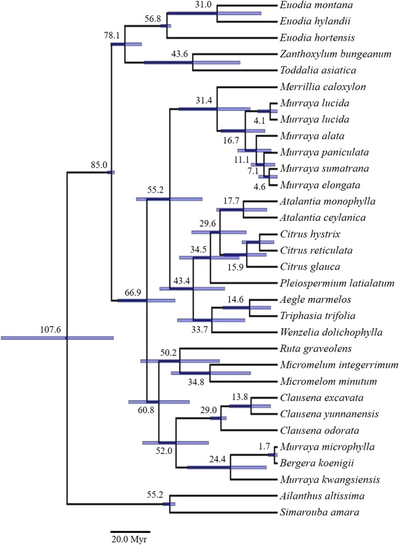 Keywords: Molecular dating; Monophyly; Murraya; Phylogeny; Rutaceae.