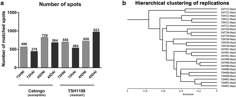 Conclusions: We present the first study reporting the proteomic alterations of resistant and susceptible genotypes in the T. cacao x M. perniciosa pathosystem. The important altered proteins identified in the present study are related to key biologic functions in resistance, such as oxidative stress, especially in the resistant genotype TSH1188, that showed a strong mechanism of detoxification. Also, the positive regulation of defense and stress proteins were more evident in this genotype. Proteins with significant roles against fungal plant pathogens, such as chitinases, trypsin inhibitors and PR 5 were also identified, and they may be good resistance markers. Finally, important biological functions, such as stress and defense, photosynthesis, oxidative stress and carbohydrate metabolism were differentially impacted with M. perniciosa infection in each genotype.