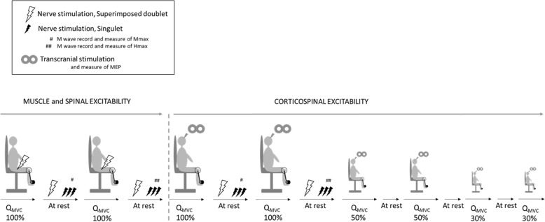 Methods: Twenty-two patients with quadriceps weakness (COPDMW), 18 patients with preserved quadriceps strength (COPDNoMW) and 20 controls were recruited. Voluntary activation was measured through peripheral nerve (VAperipheral) and transcranial magnetic (VAcortical) stimulation. Corticospinal and spinal excitability (MEP/Mmax and Hmax/Mmax) and corticospinal inhibition (silent period duration) were assessed during maximal voluntary quadriceps contractions.