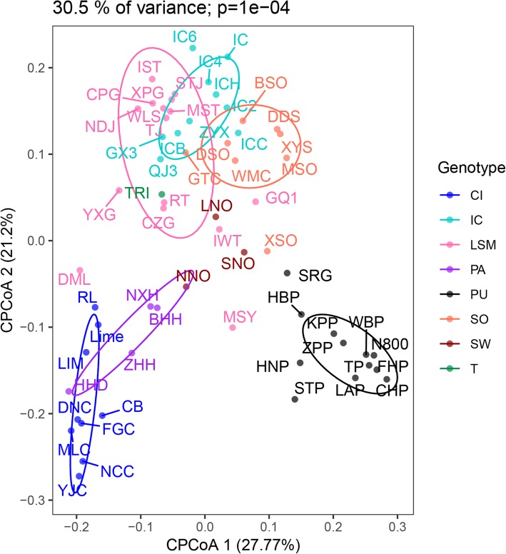 Conclusions: Collectively, our results suggest that 31 important terpenoids are abundant in wild or semiwild citrus germplasms, possibly because of a negative effect of domestication on the volatiles in citrus leaves. The sweet smell of fully open flowers may be attributed to increased levels of four terpene alcohols. In addition, a sabinene synthase gene was identified by combined transcriptomic and metabolomic analyses.