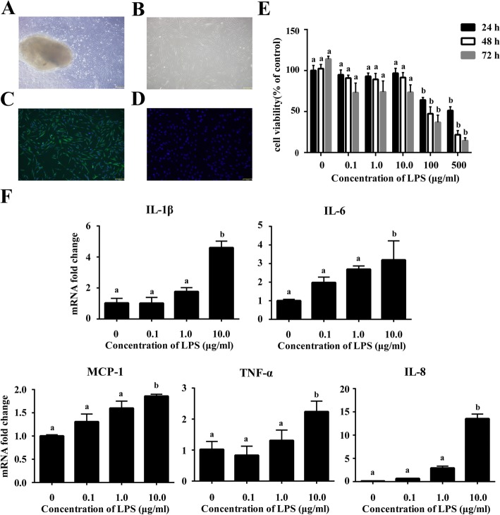 Methods: hPDLCs were isolated from healthy premolars and cultured in alpha minimum Eagle's medium (α-MEM). Lipopolysaccharides (LPS) were used to induce the inflammation state of hPDLCs in vitro. Determination of LPS concentration for the model of inflammatory periodontium was based on MTT and genes expression analysis. Then the cyclic stress of 0, 0-50, 0-90 and 0-150 kPa was applied to the inflammatory hPDLCs for 5 days respectively. mRNA and protein levels of osteogenic, osteoclastic and inflammation-related markers were examined after the treatment.