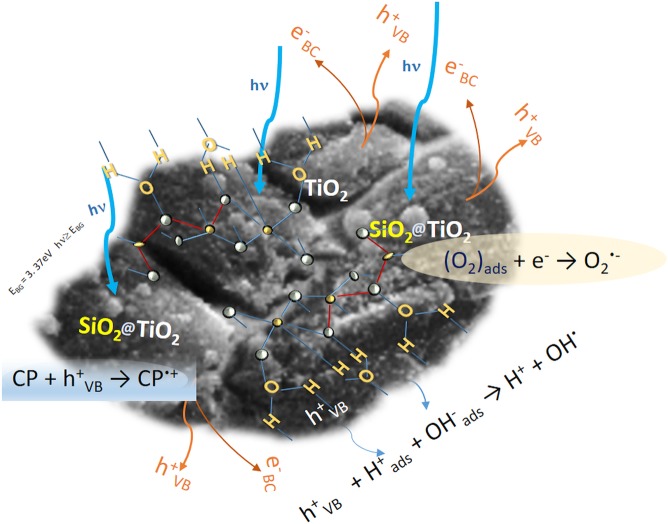There is an increased interest in recycling valuable waste materials for usage in procedures with high added values. Silica microparticles are involved in the processes of catalysis, separation, immobilization of complexants, biologically active compounds, and different nanospecies, responding to restrictive requirements for selectivity of various chemical and biochemical processes. This paper presents the surface modification of accessible and dimensionally controlled recycled silica microfiber with titanium dioxide. Strong base species in organic solvents: methoxide, ethoxide, propoxide, and potassium butoxide in corresponding alcohol, activated the glass microfibres with 12-13 µm diameter. In the photo-oxidation process of a toxic micro-pollutant, cyclophosphamide, the new composite material successfully proved photocatalytic effectiveness. The present work fulfills simultaneously two specific objectives related to the efforts directed towards a sustainable environment and circular economy: recycling of optical glass microfibers resulted as waste from the industry, and their usage for the photo-oxidation of highly toxic emerging micro-pollutants.