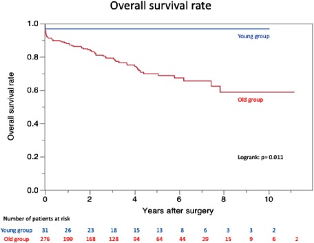 Objectives: The aim of this study is to investigate the characteristics and surgical outcomes of acute type A aortic dissection (AAAD) in patients younger than 50 years of age. Methods: We retrospectively evaluated 307 patients who consecutively underwent surgical treatment for AAAD in our institute from January 2007 to June 2017. Patients were classified into two groups: the young group with 31 patients aged younger than 50 and the old group with 276 patients aged 50 years or older. Results: In-hospital mortality was similar in both groups (3.2% vs. 9.4%, p=0.19). Overall survival at 5 years was higher in the young group than that in the old group (97% vs. 71%, p=0.017). No significant differences were observed in freedom from aorta-related death and distal aortic reoperation at 5 years (97% vs. 87%, p=0.26; 86% vs. 92%, p=0.093). The percentage of young patients with postoperative patent false lumen at the descending aorta was significantly higher than that of old patients (76% vs. 30%, p<0.001) in spite of primary entry resection. Conclusion: Early and mid-term outcomes for AAAD in young patients were satisfactory. However, future follow-up is important because postoperative patent false lumen is at a high rate in young patients in spite of entry resection.