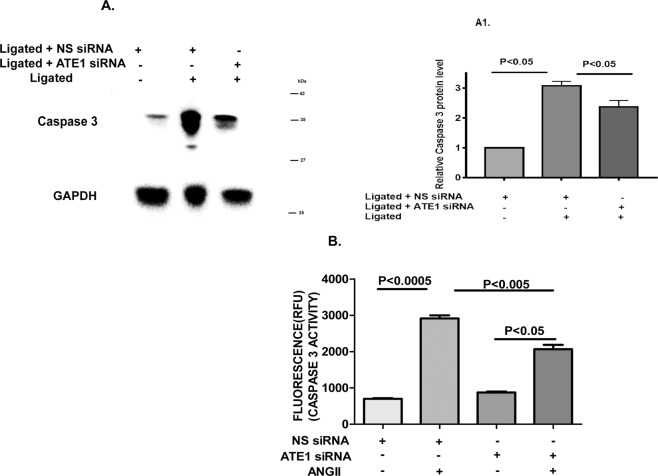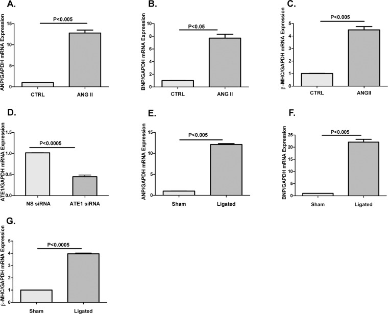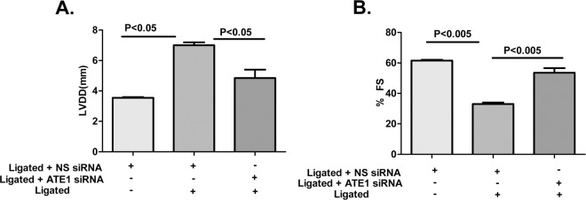 Myocardial hypertrophy, an inflammatory condition of cardiac muscles is a maladaptive response of the heart to biomechanical stress, hemodynamic or neurohormonal stimuli. Previous studies indicated that knockout of Arginyltransferase (ATE1) gene in mice and embryos leads to contractile dysfunction, defective cardiovascular development, and impaired angiogenesis. Here we found that in adult rat model, downregulation of ATE1 mitigates cardiac hypertrophic, cardiac fibrosis as well as apoptosis responses in the presence of cardiac stress i.e. renal artery ligation. On contrary, in wild type cells responding to renal artery ligation, there is an increase of cellular ATE1 protein level. Further, we have shown the cardioprotective role of ATE1 silencing is mediated by the interruption of TAK1 activity-dependent JNK1/2 signaling pathway. We propose that ATE1 knockdown in presence of cardiac stress performs a cardioprotective action and the inhibition of its activity may provide a novel approach for the treatment of cardiac hypertrophy.