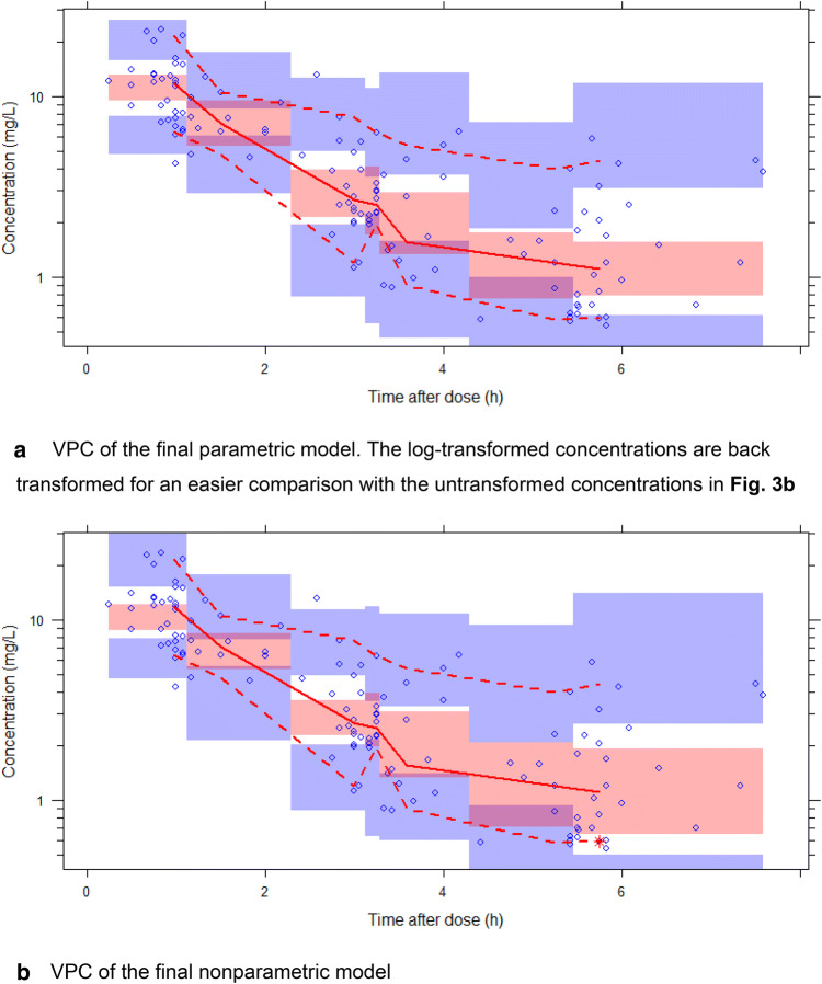 Conclusions: Both models described imipenem popPK well; the parameter estimates were comparable and the included covariate was identical. However, estimated BSV was higher in the nonparametric model. This may have consequences for estimated exposure during dosing simulations and should be further investigated in simulation studies.