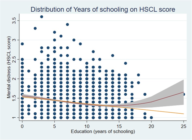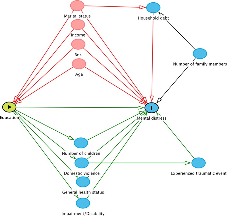 Methods: Between October and November 2016, a cross sectional study was conducted using a multi-stage sampling design with face-to-face interviews using the Hopkins Symptom Checklist (HSCL-10) for mental distress (symptoms of depression and anxiety). The multivariable analysis strategy was based on Directed Acyclic Graphs (DAGs), to identify confounders, mediators and colliders. Pearson's chi-square was used for testing differences between proportions and multiple linear regression analysis was applied to explore the association between education (years at school) and mental distress (HSCL score).