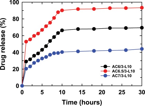 In this study, chitosan and alginate were selected to prepare alginate/chitosan nanoparticles to load the drug lovastatin by the ionic gelation method. The synthesized nanoparticles loaded with drug were characterized by Fourier transform infrared spectroscopy (FT-IR), scanning electron microscopy (SEM), laser scattering and differential scanning calorimetry (DSC) methods. The FTIR spectrum of the alginate/chitosan/lovastatin nanoparticles showed that chitosan and alginate interacted with lovastatin through hydrogen bonding and dipolar-dipolar interactions between the C-O, C=O, and OH groups in lovastatin, the C-O, NH, and OH groups in chitosan and the C-O, C=O, and OH groups in alginate. The laser scattering results and SEM images indicated that the alginate/chitosan/lovastatin nanoparticles have a spherical shape with a particle size in the range of 50-80 nm. The DSC diagrams displayed that the melting temperature of the alginate/chitosan/lovastatin nanoparticles was higher than that of chitosan and lower than that of alginate. This result means that the alginate and chitosan interact together, so that the nanoparticles have a larger crystal degree when compared with alginate and chitosan individually. Investigations of the in vitro lovastatin release from the alginate/chitosan/lovastatin nanoparticles under different conditions, including different alginate/chitosan ratios, different solution pH values and different lovastatin contents, were carried out by ultraviolet-visible spectroscopy. The rate of drug release from the nanoparticles is proportional to the increase in the solution pH and inversely proportional to the content of the loaded lovastatin. The drug release process is divided into two stages: a rapid stage over the first 10 hr, then the release becomes gradual and stable. The Korsmeyer-Peppas model is most suitable for the lovastatin release process from the alginate/chitosan/lovastatin nanoparticles in the first stage, and then the drug release complies with other models depending on solution pH in the slow release stage. In addition, the toxicity of alginate/chitosan/lovastatin (abbreviated ACL) nanoparticles was sufficiently low in mice in the acute toxicity test. The LD50 of the drug was higher than 5000 mg/kg, while in the subchronic toxicity test with treatments of 100 mg/kg and 300 mg/kg ACL nanoparticles, there were no abnormal signs, mortality, or toxicity in general to the function or structure of the crucial organs. The results show that the ACL nanoparticles are safe in mice and that these composite nanoparticles might be useful as a new drug carrier.