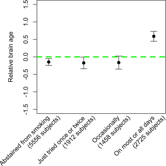 Association of relative brain age with tobacco smoking, alcohol consumption, and genetic variants