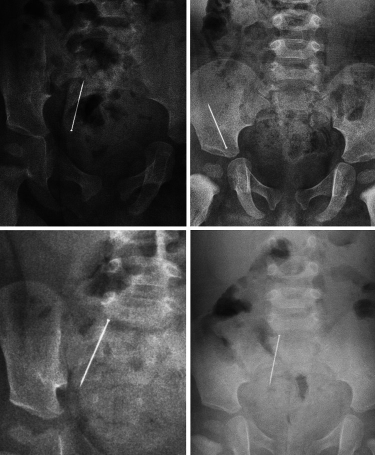We present a 1-year-old boy who was asymptomatic and brought to the emergency room on suspicion of his having swallowed a pin. Confirmation of ingestion of the pin and its passage through the gut was achieved with abdominal radiography. The pin, which was followed with serial abdominal radiographs, was expected to leave the gastrointestinal tract, but was fixed to the right lower quadrant. When the pin had not passed after 10 days, and with increasing concern about the likelihood of perforation, ultrasonography was used to locate its exact position and allow surgical removal. Only a few cases involving the use of ultrasonography to reveal the exact location of an ingested foreign body prior to surgery have been reported ın the literature. This case presents an impressive example of the use of ultrasonography to reveal the intra-appendiceal location of an ingested foreign body, and to facilitate its surgical removal.