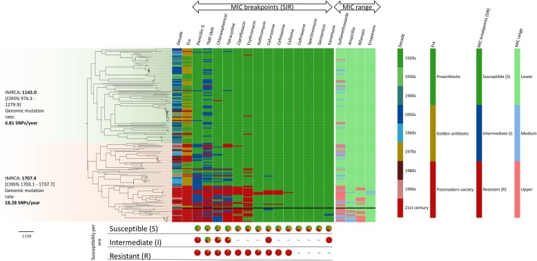 Methods: Lyophilised isolates were revived and examined using Etest (18 antimicrobials) and whole-genome sequencing (WGS). Quality-assured genome sequences were obtained for 191 viable and 40 non-viable isolates and analysed with multiple phylogenomic approaches.