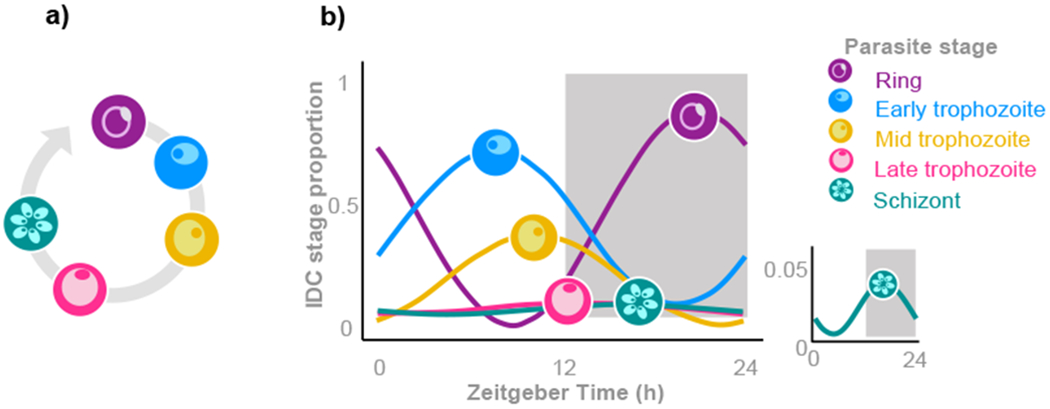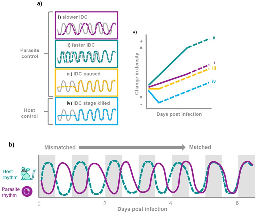 Keywords: Plasmodium; circadian clock; circadian rhythm; entrainment; fitness; host-parasite interactions; inflammatory response; intra-erythrocytic development cycle; metabolism; nutrient sensing; periodicity; synchronicity.