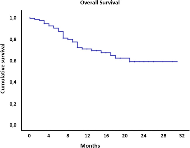 Results: Mean duration was 416 min (±80); 70% of patients had an uncomplicated postoperative recovery. Pulmonary complications were observed in 17% of patients. Anastomotic leakage was observed in 8% of patients. Median ICU stay was 1 day and median overall postoperative hospital stay was 11 days. The 30-day mortality was 1%; 90-day mortality was 3%. A R0 resection was reached in 92% of patients with a median number of 29 dissected lymph nodes. All patients had at least 7 months of follow-up with a median follow-up of 17 months. Median overall survival was not reached yet.