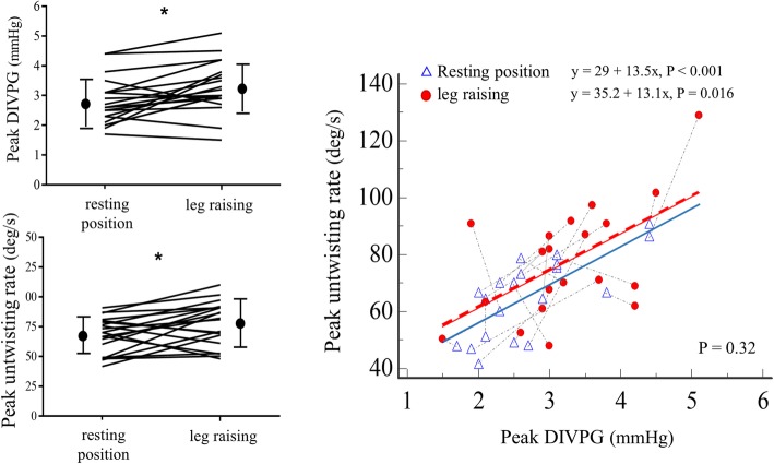 Results: We included 154 subjects, aged between 18 to 77 years old, 63% were male. Test-retest reliability for color Doppler-derived DIVPG measurements was good, the intraclass correlation coefficients were 0.97 [0.91-0.99] and 0.97 [0.67-0.99] for intra- and inter-observer reproducibility, respectively. Peak DIVPG was positively correlated with peak untwisting rate (r = 0.73, P < 0.001). On multivariate analysis, peak DIVPG was the only diastolic parameter that was independently associated with untwisting rate. Age and gender were the clinical predictive factors for peak untwisting rate, whereas only age was independently associated with peak DIVPG. Untwisting rate and DIVPG were both load-dependent, without affecting their relationship.