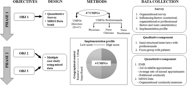 Methods: This study will be based on an explanatory sequential design that includes 1) a quantitative survey conducted in 47 teaching primary healthcare clinics, and 2) a multiple case study using mixed data, contrasted cases (n = 4), representing various implementation profiles and geographical contexts. For each case, semi-structured interviews and focus group will be conducted with professionals and patients. Impact analyses will also be conducted in the four selected clinics using data retrieved from the electronic medical records.