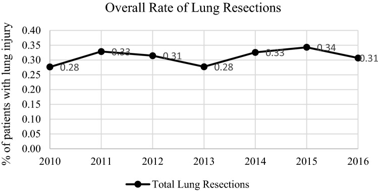 Pneumonectomy after traumatic lung injury (TLI) is associated with shock, increased pulmonary vascular resistance, and eventual right ventricular failure. Historically, trauma pneumonectomy (TP) mortality rates ranged between 53 and 100%. It is unclear if contemporary mortality rates have improved. Therefore, we evaluated outcomes associated with TP and limited lung resections (LLR) (i.e., lobectomy and segmentectomy) and aimed to identify predictors of mortality, hypothesizing that TP is associated with greater mortality versus LLR. We queried the Trauma Quality Improvement Program (2010-2016) and performed a multivariable logistic regression to determine the independent predictors of mortality in TLI patients undergoing TP versus LLR. TLI occurred in 287,276 patients. Of these, 889 required lung resection with 758 (85.3%) undergoing LLR and 131 (14.7%) undergoing TP. Patients undergoing TP had a higher median injury severity score (26.0 vs. 24.5, p = 0.03) but no difference in initial median systolic blood pressure (109 vs. 107 mmHg, p = 0.92) compared to LLR. Mortality was significantly higher for TP compared to LLR (64.9% vs 27.2%, p < 0.001). The strongest independent predictor for mortality was undergoing TP versus LLR (OR 4.89, CI 3.18-7.54, p < 0.001). TP continues to be associated with a higher mortality compared to LLR. Furthermore, TP is independently associated with a fivefold increased risk of mortality compared to LLR. Future investigations should focus on identifying parameters or treatment modalities that improve survivability after TP. We recommend that surgeons reserve TP as a last-resort management given the continued high morbidity and mortality associated with this procedure.