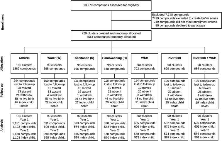 Effect of Improved Water Quality, Sanitation, Hygiene and Nutrition Interventions on Respiratory Illness in Young Children in Rural Bangladesh: A Multi-Arm Cluster-Randomized Controlled Trial