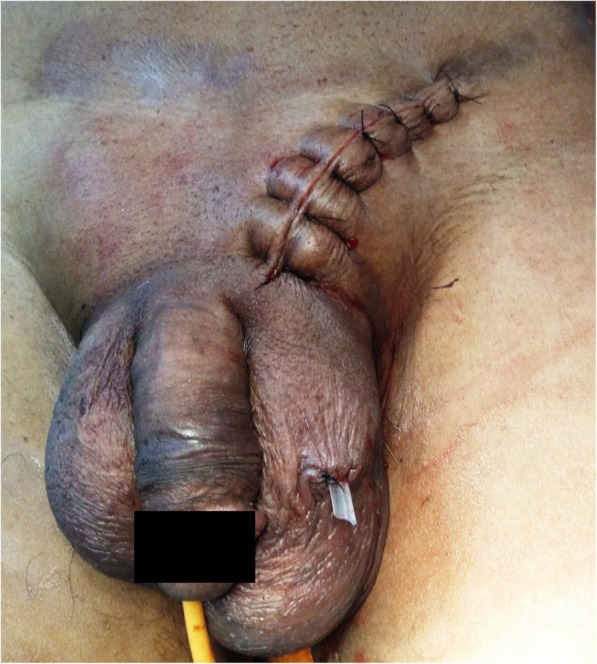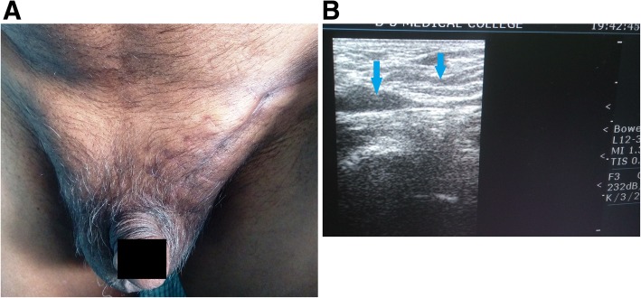Case presentation: A 65-year-old afebrile gentleman, laborer (in brick industry), and non-smoker with no previous major health problems was admitted with swelling in the bilateral inguinal region. The swelling had started one and half months ago. He had developed severe pain over the swelling for last 1 day with tenderness and indurations. Neither he had history of previous surgeries, chronic cough, dysuria, prostatism, and trauma nor he presented any thrombogenic factors. There was no history of vomiting, abdominal pain, and obstipation. Physical examination revealed normotensive person with BMI of 22.5, was significant only for one tender, movable, and firm to hard 10 cm × 3 cm mass extending from the left deep inguinal ring up to the upper pole of the testis in the scrotum. Another 5 cm × 3 cm mass of similar characteristics was found extending from deep inguinal ring up to the root of the scrotum on right side. The testes and prostate were normal on palpation. On the contrary to preoperative USG, which clinched suspicion of incarcerated inguinal hernia, a thrombosed pampiniform plexus without any evidence of hernia sac was found on the left side during inguino-scrotal exploration. Wound was closed without doing any further procedure. Contralateral inguino-scrotal exploration was spared considering same nature of disease. Postoperative Doppler ultrasonography confirmed the diagnosis of bilateral thrombosed pampiniform plexus. MDCT of whole abdomen revealed no abnormality other than bilateral spermatic cord thrombosis. Blood thrombophilia screening came normal. The subject had an uneventful postoperative hospital course. With 2 years of follow-up, the gentleman is doing well, remaining asymptomatic and had returned to his usual life.
